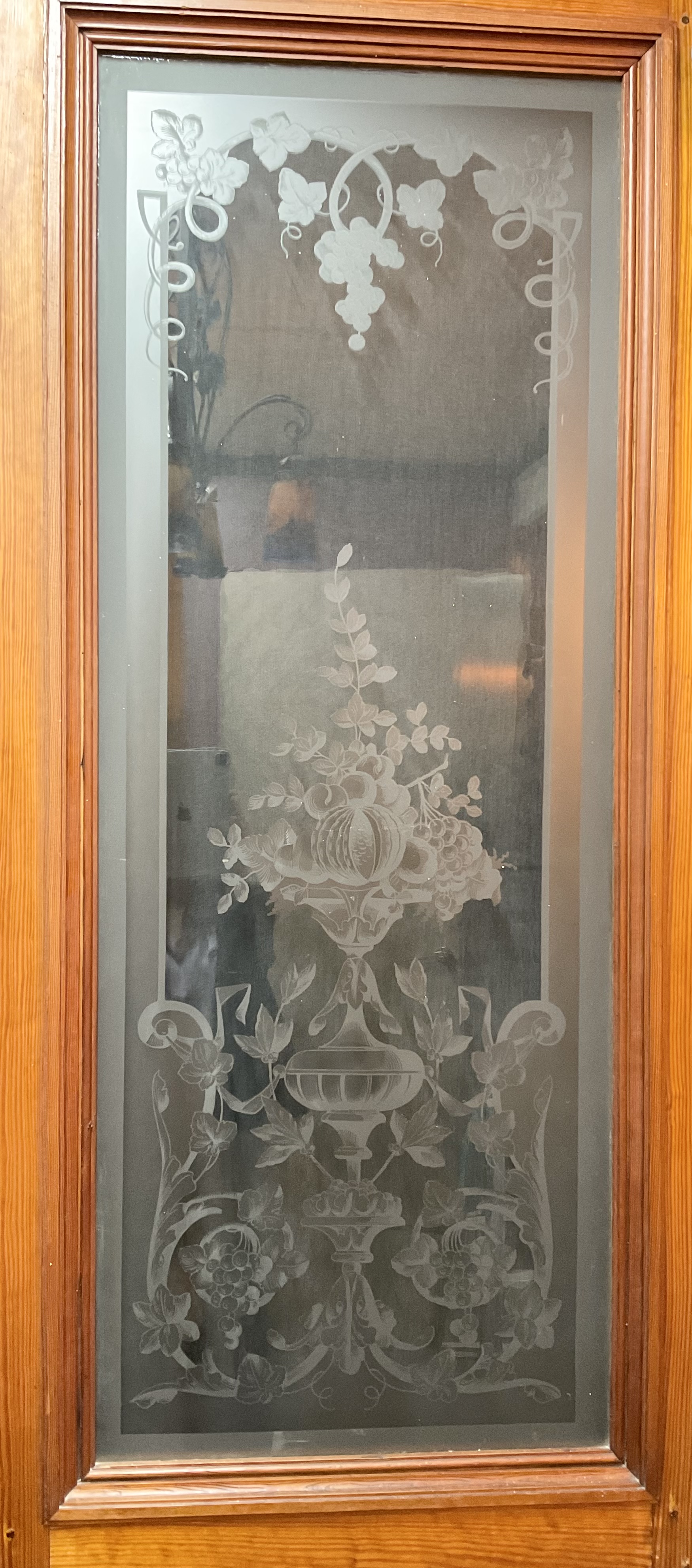 ぶどうや桃などのフルーツと植物が描かれた1枚です。
