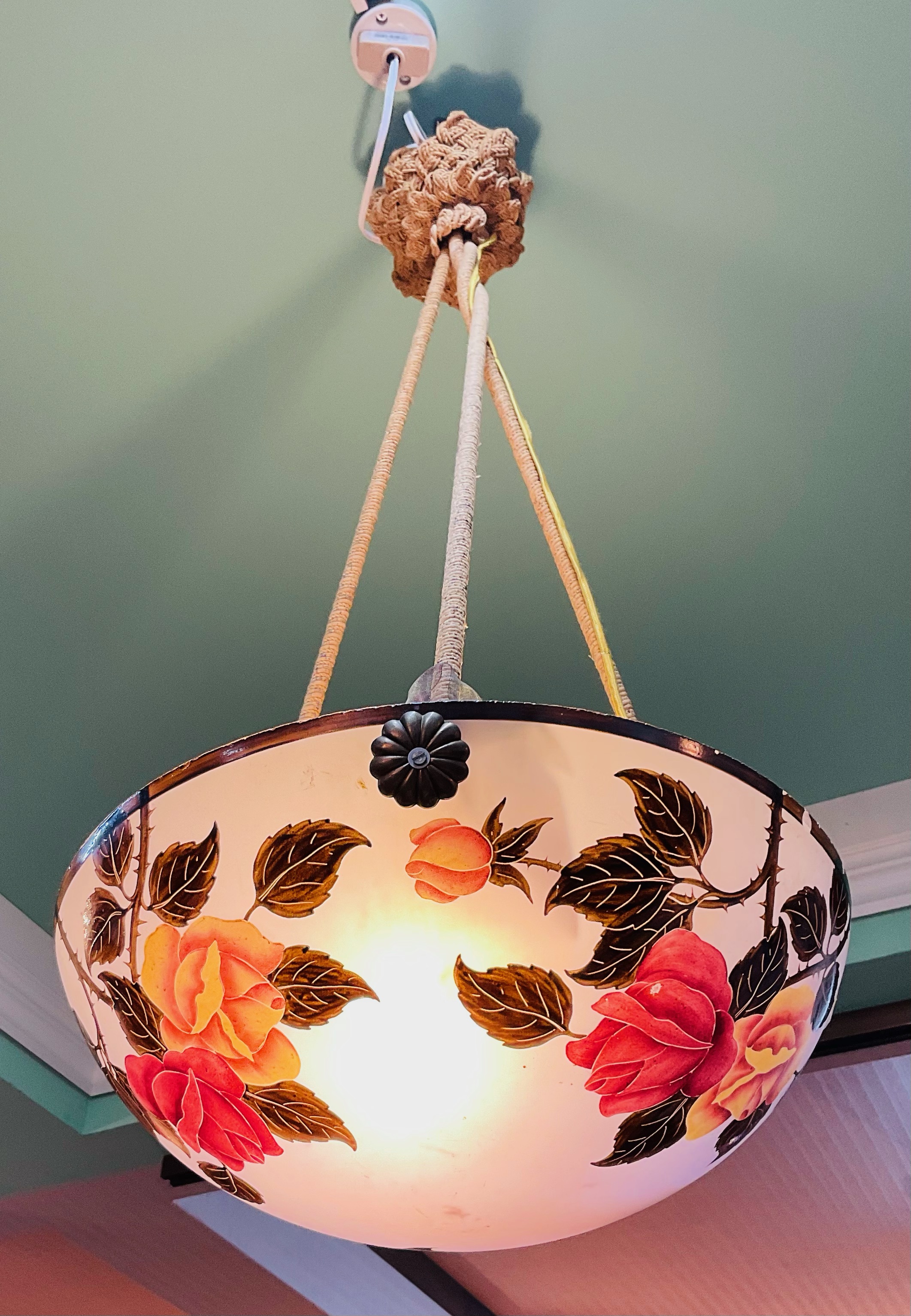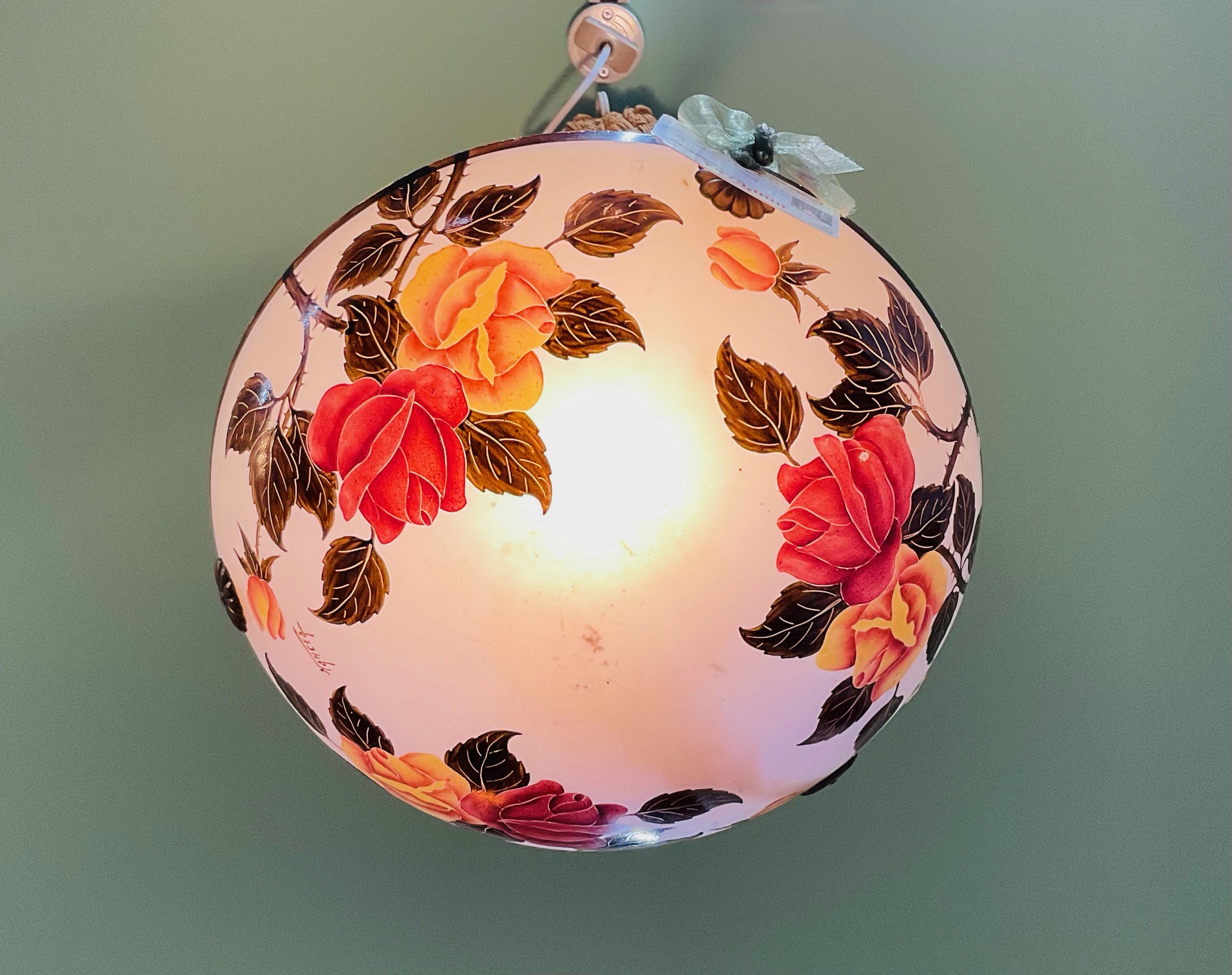 白いガラスに薔薇のイラストがパッと映える照明です。