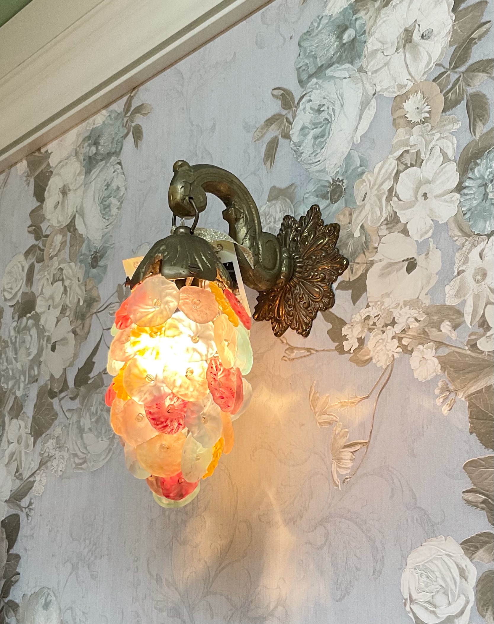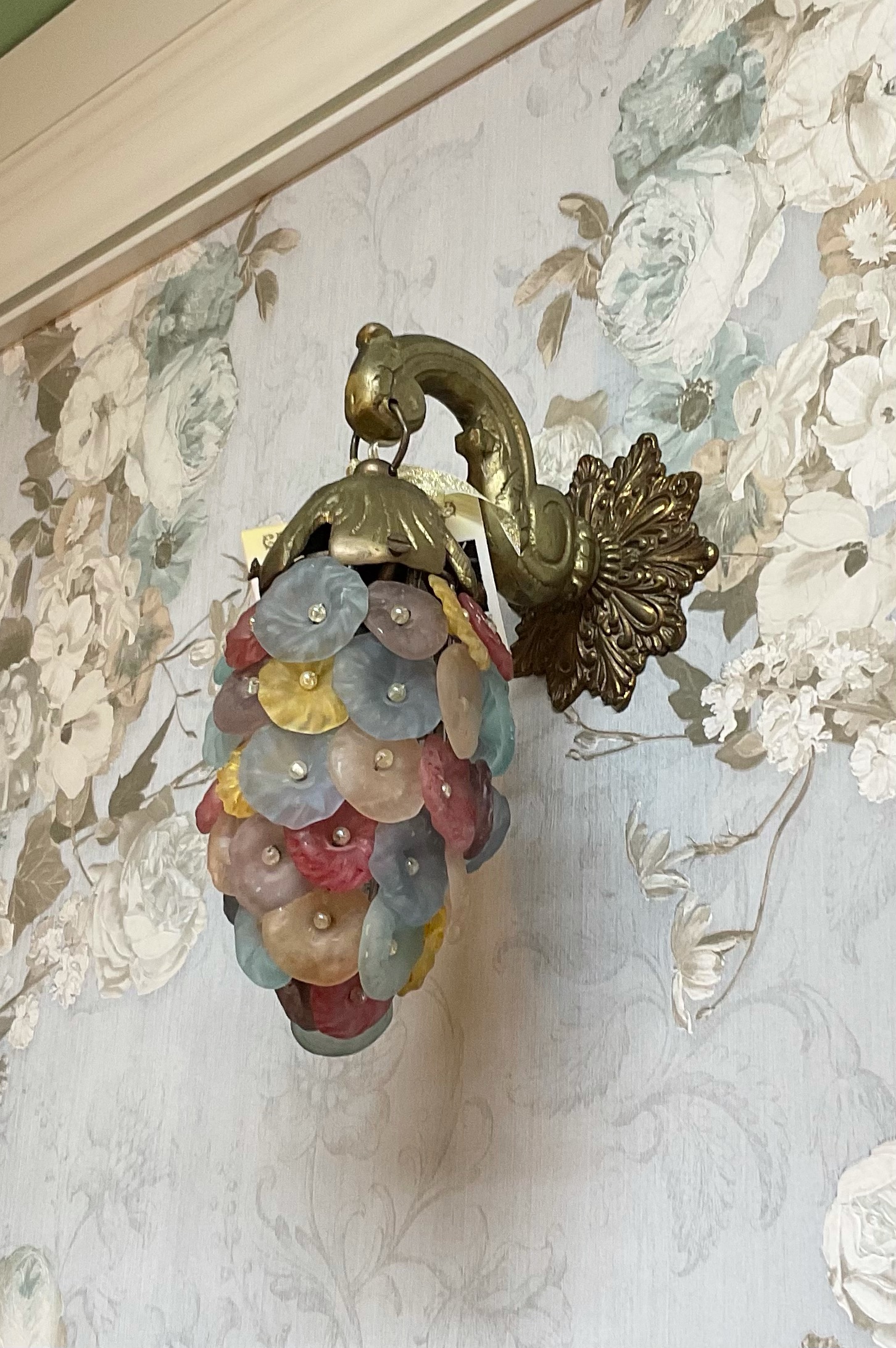 ガラスで出来たパステルカラーのお花たちが可愛らしい一品です。