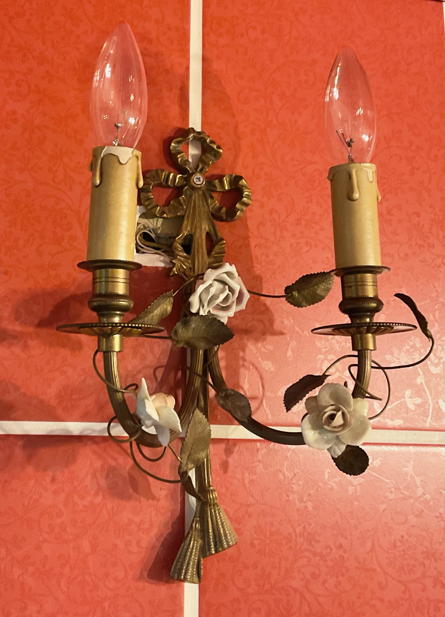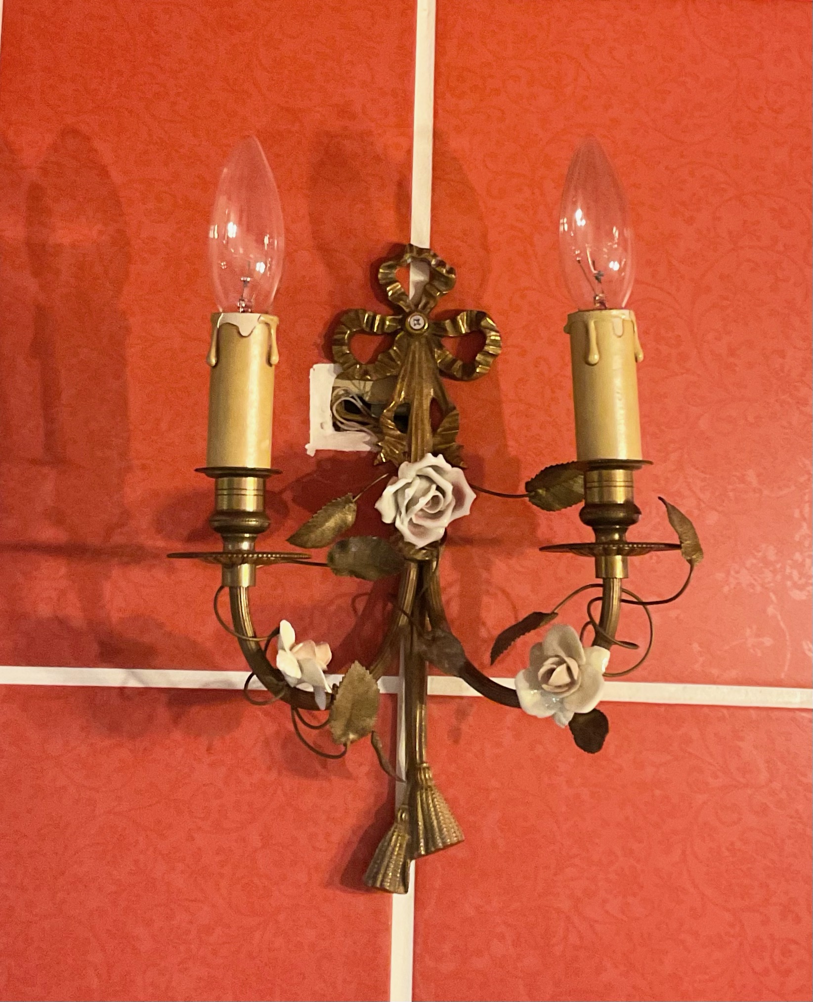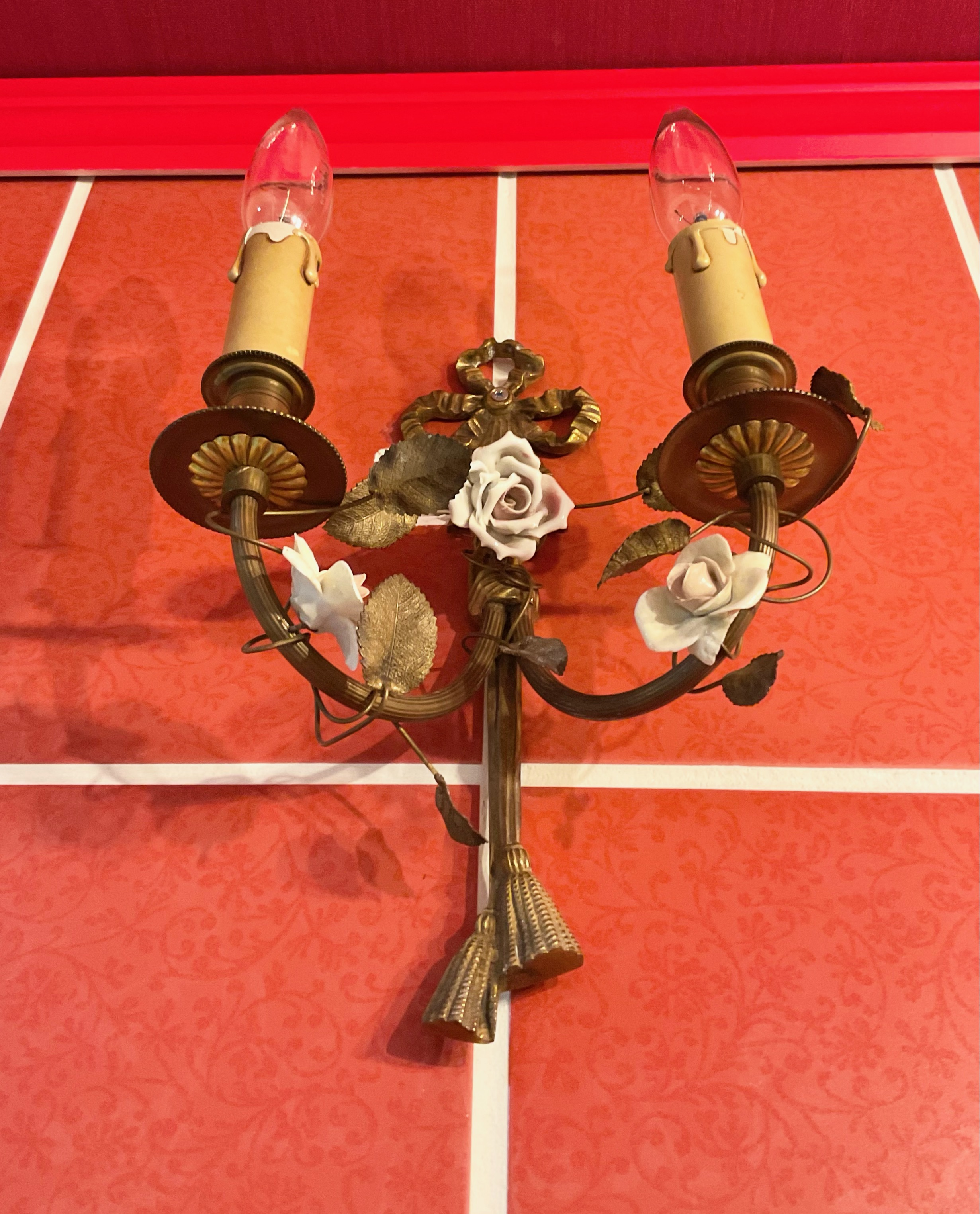 ピンク色の陶器のお花が装飾された、プリンセスのように可愛らしい照明です。