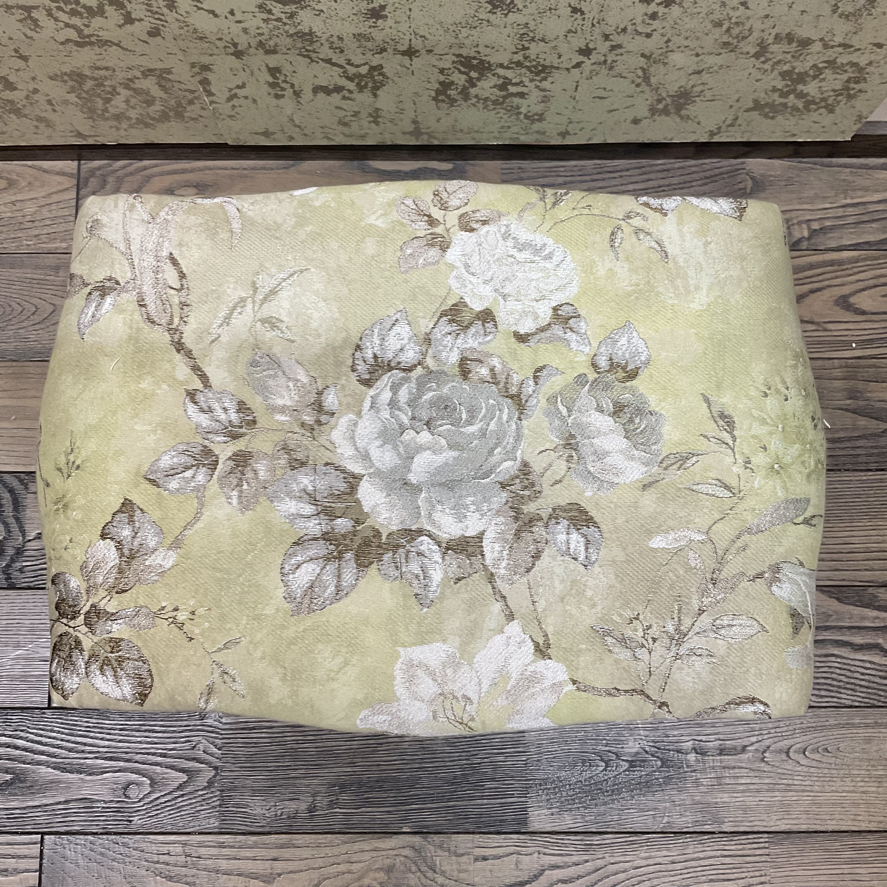 生地を張り替えた、華やかなオットマンです。