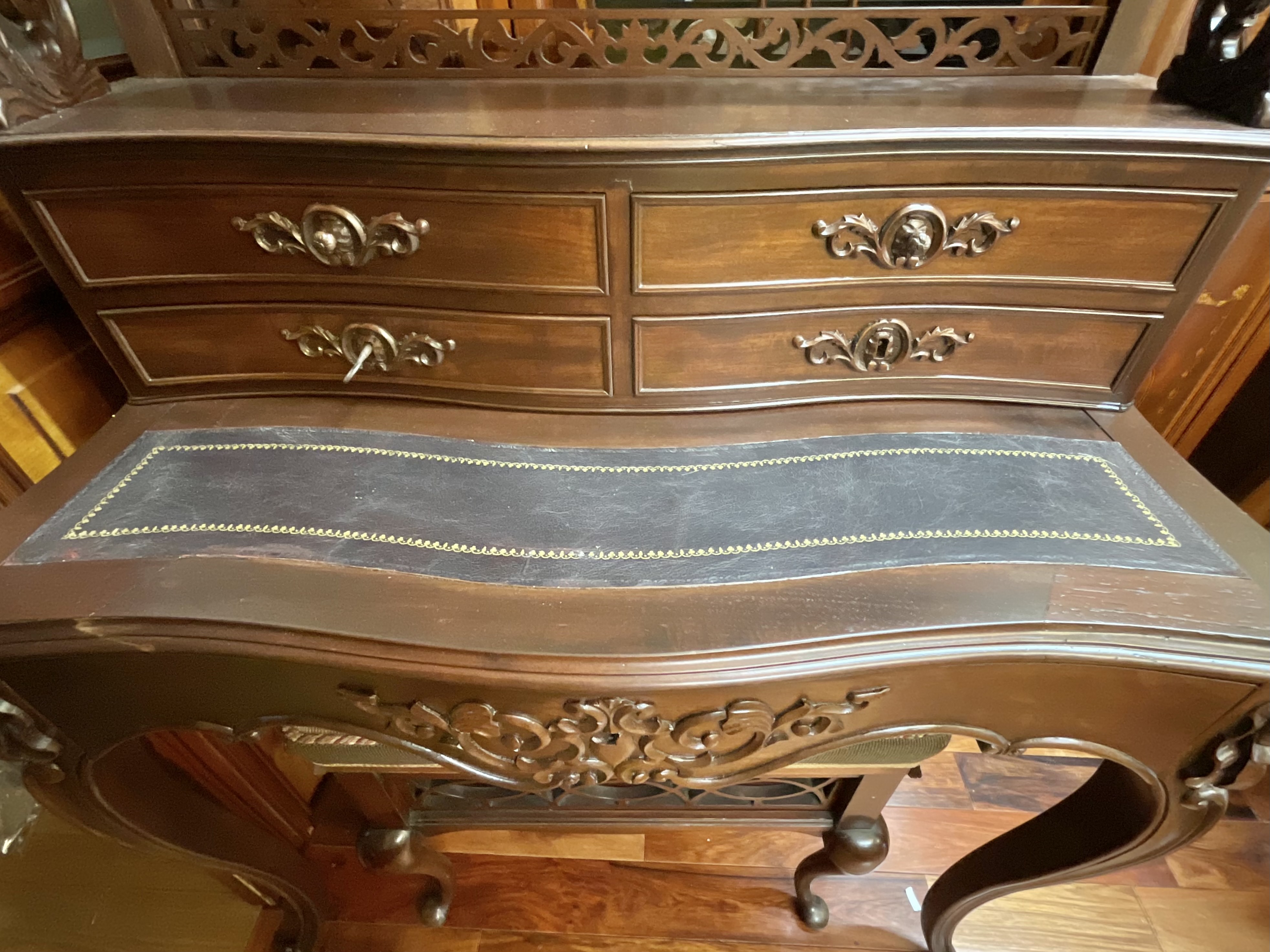 木材はマホガニーを使用。彫刻や曲線が美しい一品です