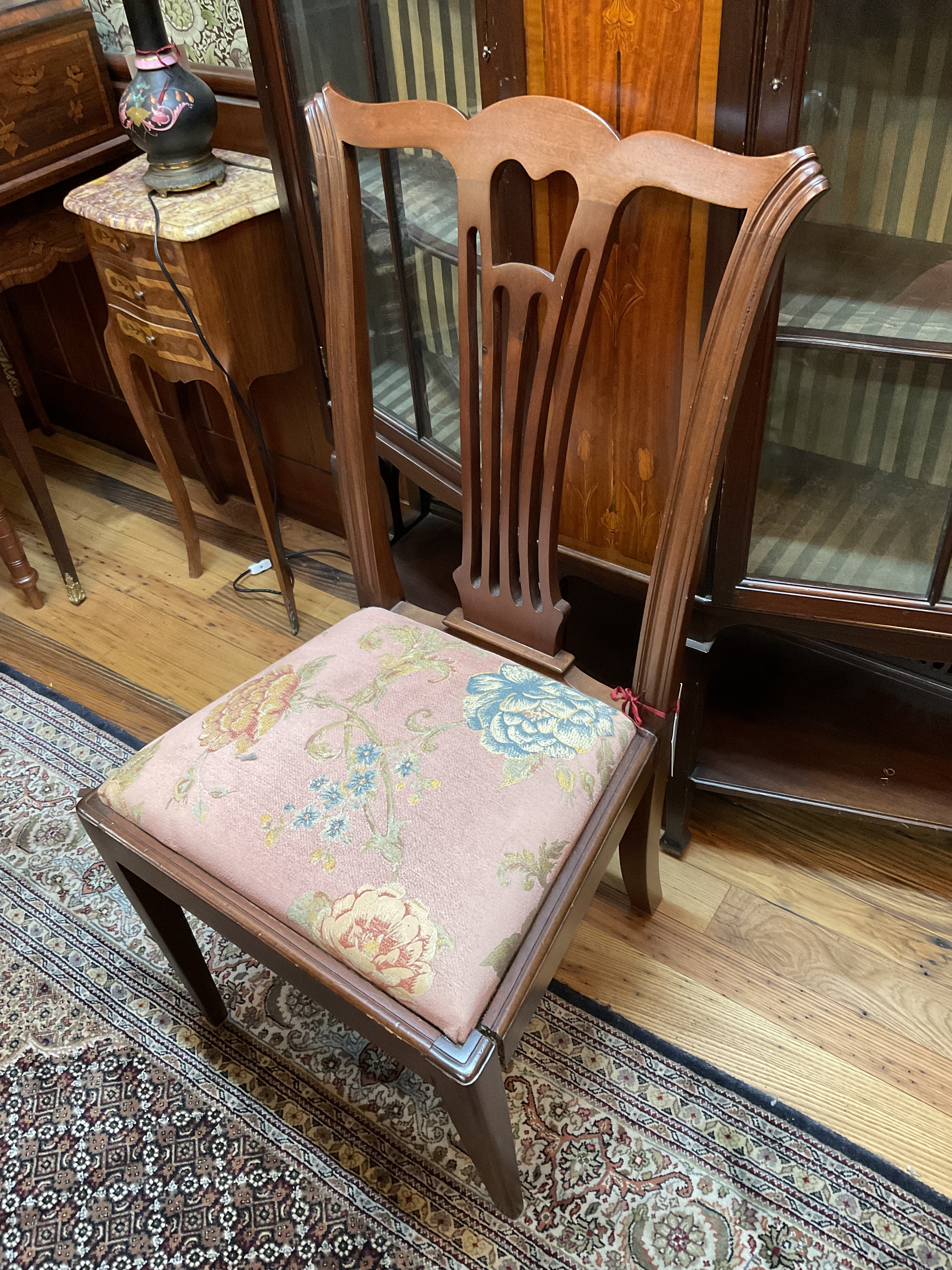 背もたれ部分が長く、ゆっくりお寛ぎ頂ける椅子です。日本でローズ生地に張り替えを行ないました。
