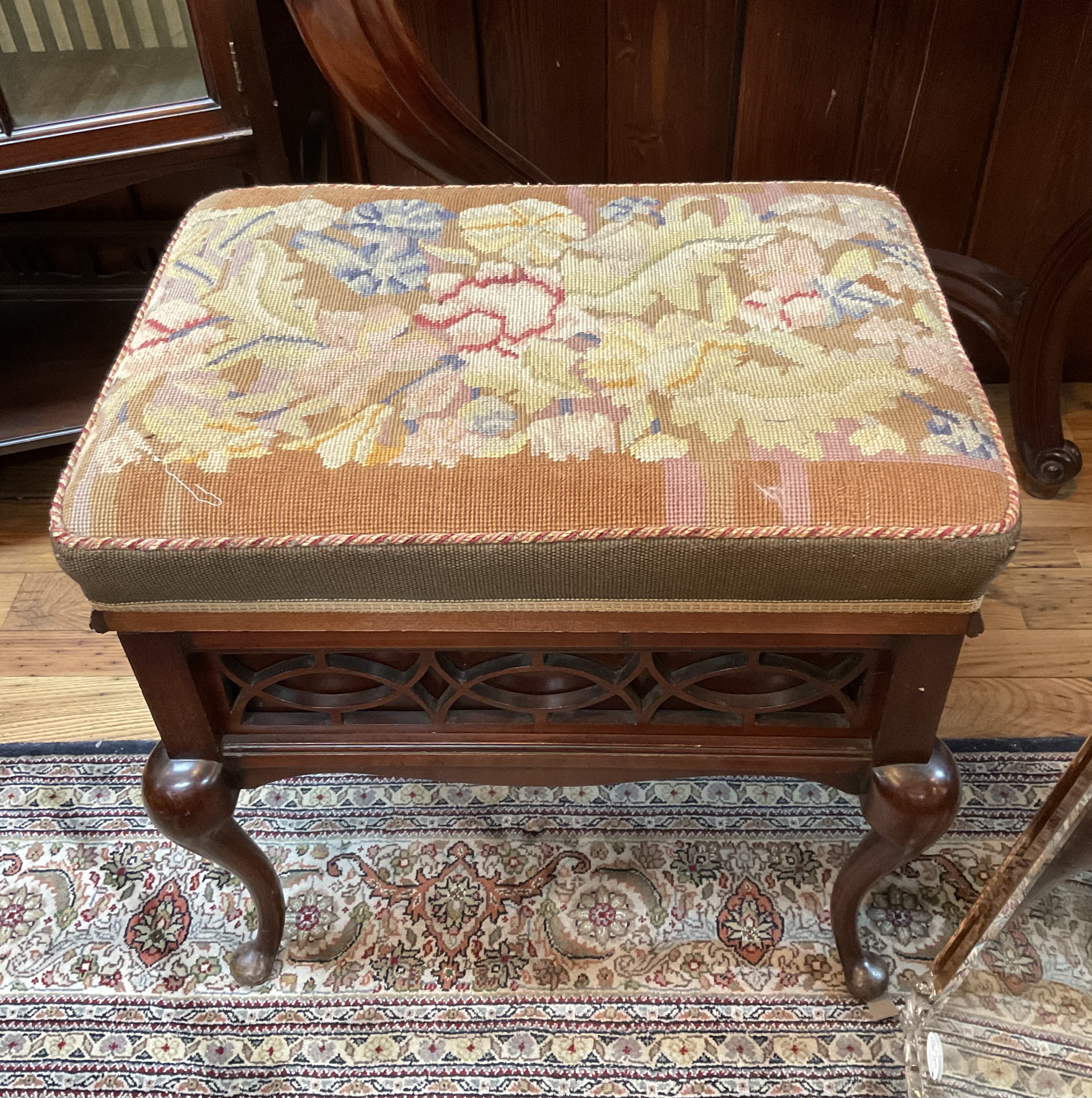 刺繍生地と側面の彫刻が美しい一品です。