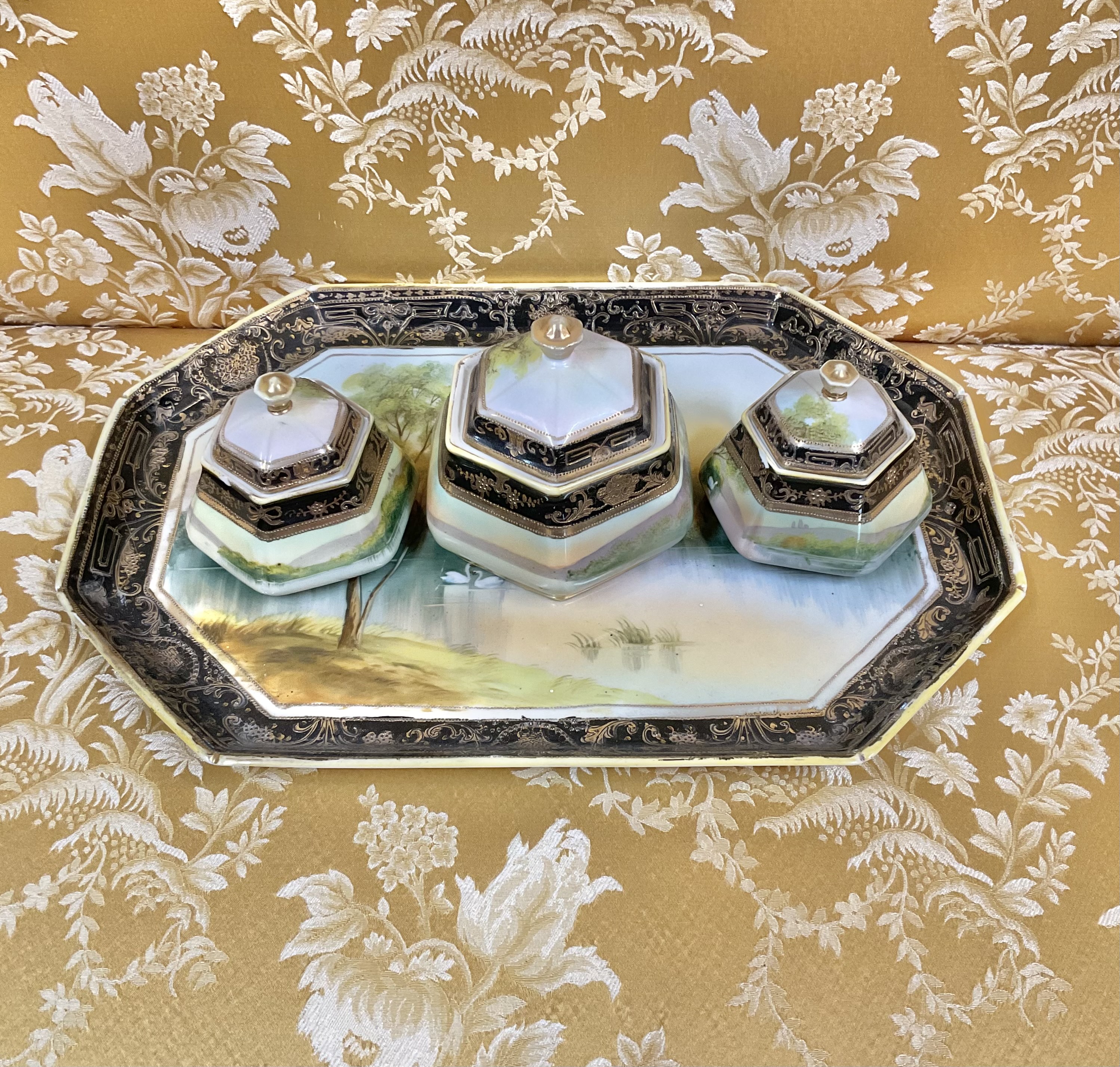 湖畔の風景が美しいテーブルセットです。
