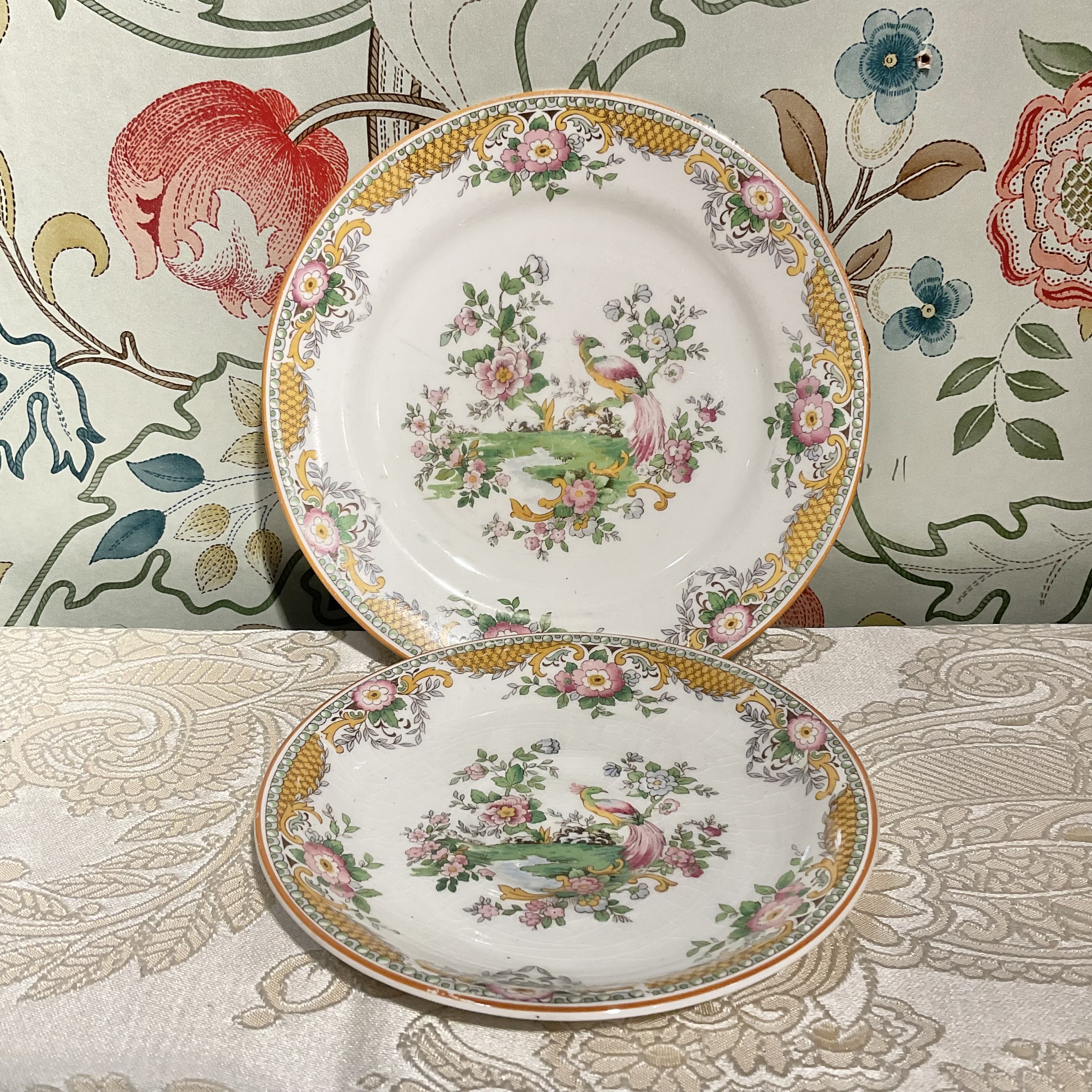 色鮮やかな花と鳥が美しい一品です。