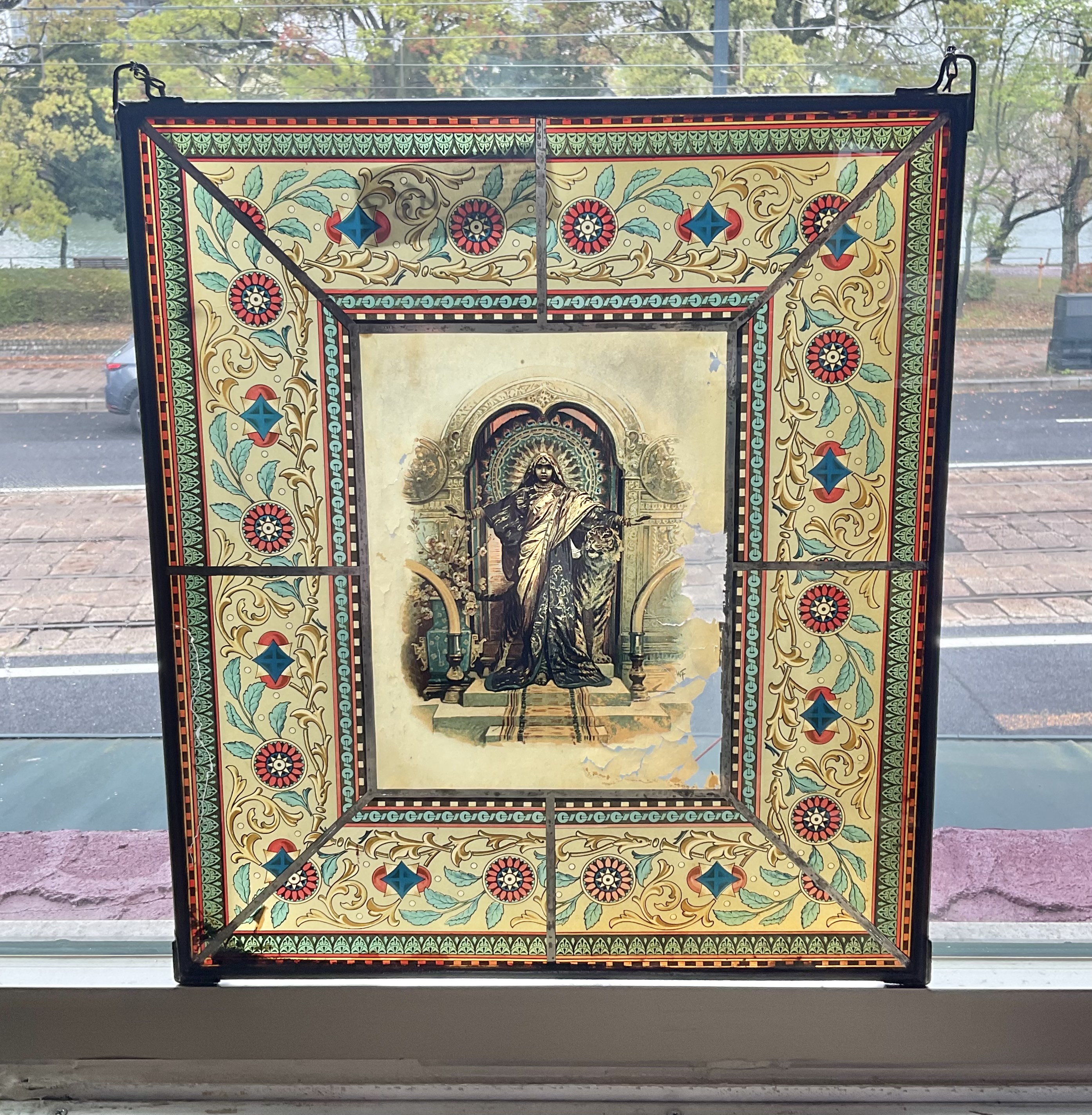 壁にかけられるタイプのステンドガラスです。一部に剥がれがあるため特価品です。